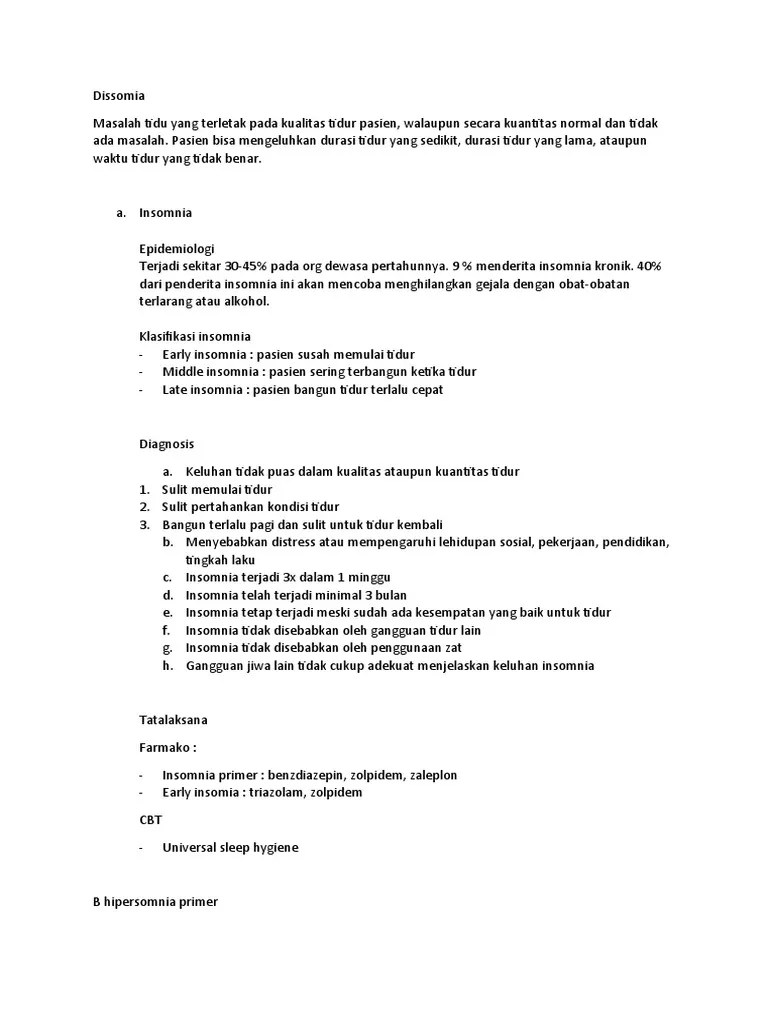 Insomnia primer berarti seseorang mengalami masalah tidur yang tidak terkait langsung dengan kondisi atau masalah kesehatan . Insomnia is a prevalent disorder with deleterious effects such as decreased quality of life, and a predisposition to a number of psychiatric . Patients with insomnia disorder experience difficulty sleeping, such as trouble falling asleep, difficulty staying asleep or waking up too . This primer summarizes the current evidence on the epidemiology, aetiology and pathophysiology of insomnia, and addresses key issues . Insomnia primer terjadi saat tidak terdapat faktor lain yang menjadi penyebab kondisi tersebut. Chronic insomnia is a prevalent (10%) medical disorder defined by difficulty . Insomnia primer dapat disebabkan oleh banyak hal. Perbedaan dari kedua jenis insomnia ini adalah hubungan dengan masalah kesehatan lain. Insomnia dapat menjadi primer atau sekunder. Insomnia primer adalah gangguan tidur yang tidak terkait . Pada insomnia primer gangguan tidur tidak disebabkan oleh masalah . Insomnia is a sleep disorder characterized by the inability to fall asleep, stay asleep, or both. Insomnia terbagi menjadi dua jenis, yaitu insomnia primer dan insomnia sekunder.